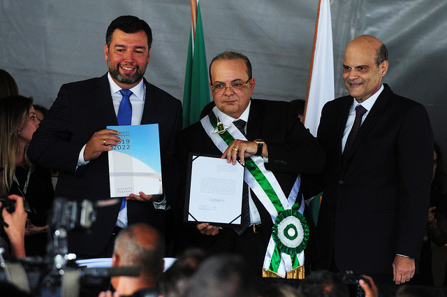 Acompanhado do vice, Paco Britto, Ibaneis recebeu a faixa governamental das mãos do ex-chefe do
